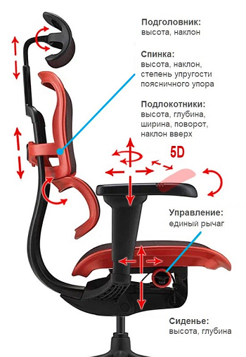 - Регулировка высоты спинки