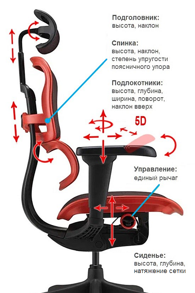 - Подлокотники 5D: Высота, глубина, ширина, поворот, наклон вверх